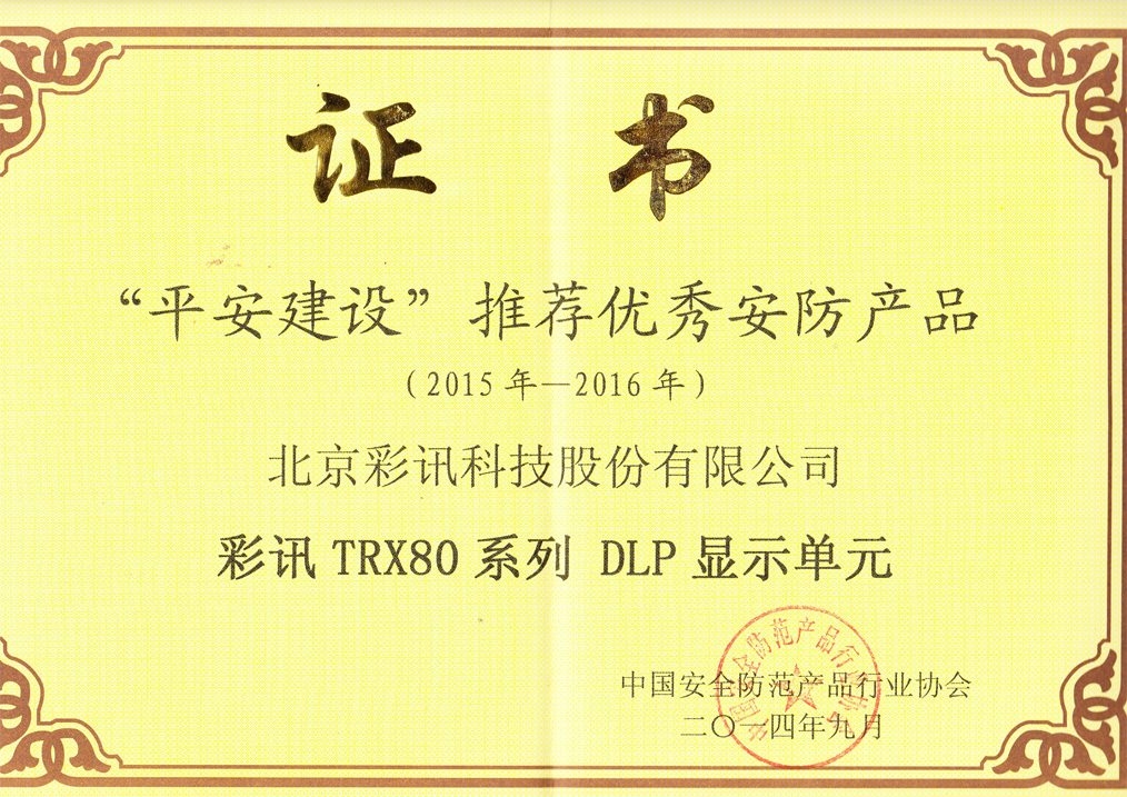 平安建設推薦優(yōu)秀安防產(chǎn)品證書